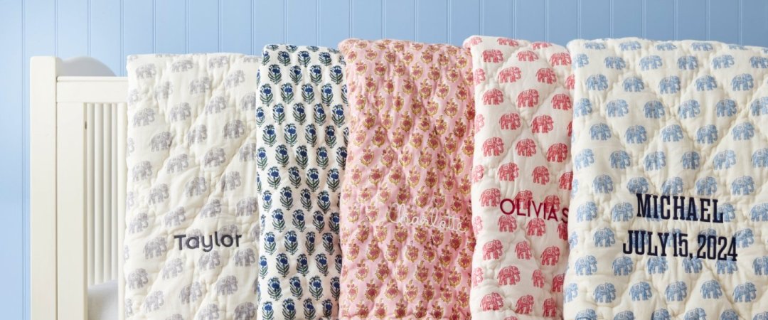 Soft, cozy and made for snuggling, wrap baby up in our beautiful, personalized blankets and apparel.